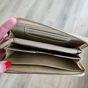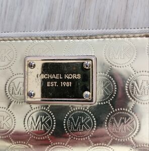Michael Kors Jet Set Wristlet Wallet Gold Signature Logo Zipper