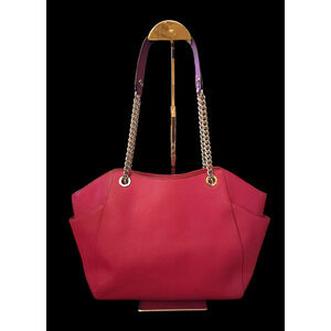 Michael Kors Jet Set red saffiano leather shoulder bag .