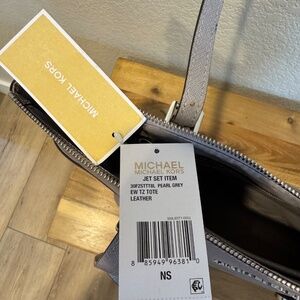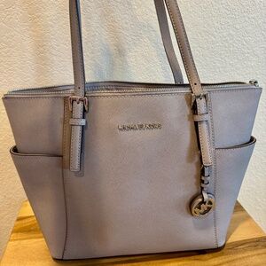 Michael Kors Jet set tote in pearl grey. Comes with dust cover. Good condition, but has an ink stain on the inner lining as shown in picture