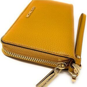 Michael Kors Jet Set Travel Large Flat Multifunction Phone Case Leather Wristlet - Marigold