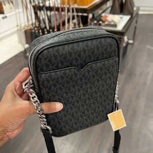 Michael Kors Jet Set Travel Xbody Messenger Shoulder Black signature Hand Bag