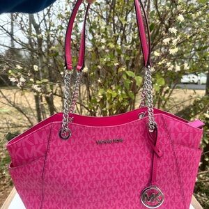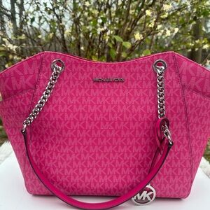 Michael Kors Jet set large chain shoulder tote Dragonfruit mk logo