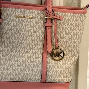 Michael Kors Jet set travel Sm Logo Top Zip Tote Primrose Pink NWT