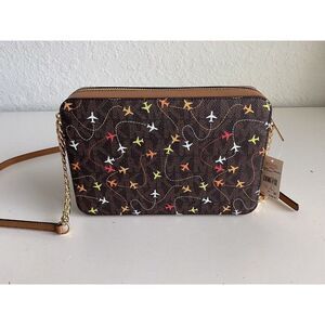 Michael Kors Jet Set Brown Akorn Multi East West Airplanes Crossbody Bag NEW