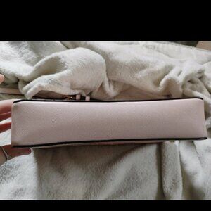 Chic Michael Kors crossbody bag in light pink. Features a stylish gold chain strap. Perfect for elevating any look.