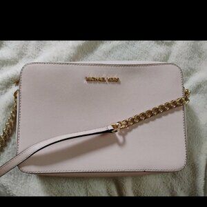 Michael Kors JetSet Powder Blush Crossbody Bag with Gold Chain