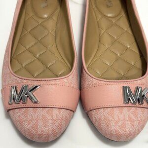 Michael Kors Jilly Logo Print Ballet Flats MK Hardware Pink Soft Girl Size 8M