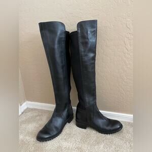 Michael Kors Joanie Black Over the Knee Leather Stretch Boots