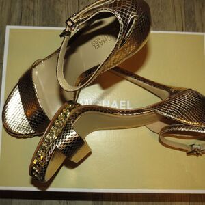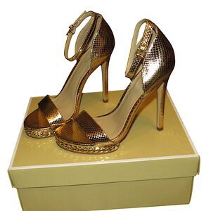 Michael Kors Jordyn Gold Leather Ankle Strap Chain Detail Platform Heels Size 6