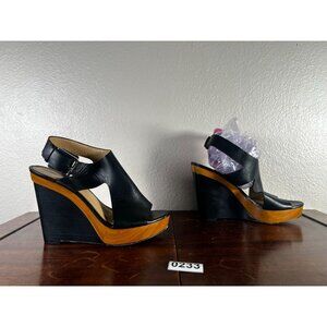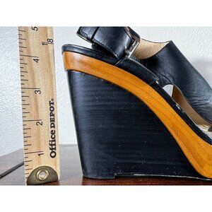 Michael Kors Josephine Sandal Womens 7M Black Platform Wedge Leather Wood Peep T