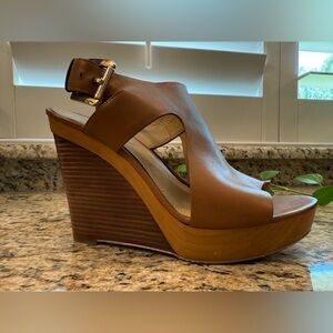 Michael Kors Josephine Wedge Sandals – Tan Leather, Size 10M