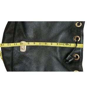 Elevate your style with this stunning Michael Kors Jules Large Convertible Drawstring Leather Shoulder Bag in black. Crafted from high-quality leather and featuring a drawstring closure with gold hardware, this bag is perfect for any fashion-forward woman. The bag also comes with a convertible feature that allows you to wear it as a shoulder bag or as a crossbody bag. This Michael Kors Jules shoulder bag is perfect for any occasion and is a must-have for any woman's wardrobe. The bag features an exterior color of black and comes with a leather handle/strap material in black. The product line is Michael Kors Jules and the model is Michael Jules. The bag is categorized under Women's Bags & Handbags, Women, and Clothing, Shoes & Accessories.