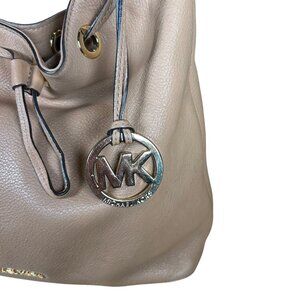 Michael Kors Jules Large Drawstring Bucket Bag in Tan Caramel Pebbled Leather