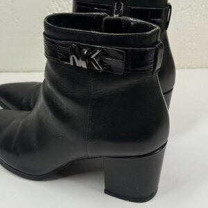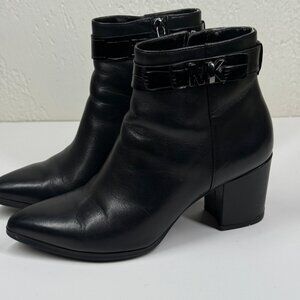 Michael Kors Julianna Ankle Boots Black Leather Block Heel Pointed Toe Size 8.5