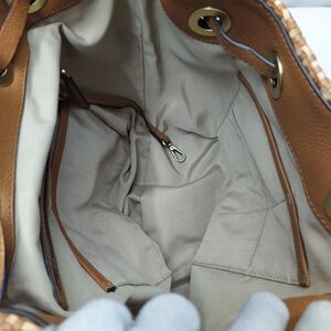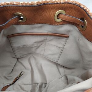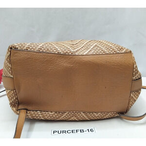 Michael Kors Junie Brown Chevron Woven Leather Drawstring Flap Closure Backpack