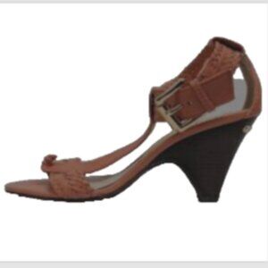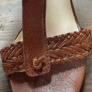 Michael Kors Juniper Woven Leather T-strap 2.5" Heel Sandals Side Buckle 8 Brown