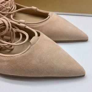 Michael Kors Kallie Size 7.5 Nude Suede Lace Up Ballet Flats