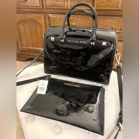 Michael Kors Kara Medium Duffle Signature Handbag/Wristlet Set NWT RARE