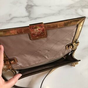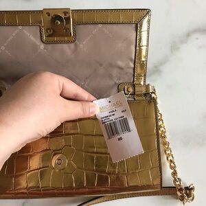 MK Karla croc embossed wallet crossbody gold leather clutch.