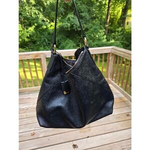 Michael Kors Karson Large Pebbled Leather Shoulder Bag Black Purse Gold Hardwar