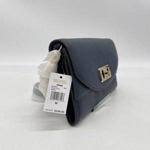 Michael Kors Karson Wallet Clutch Crossbody Navy Leather 35T8GKRC7L NWT Org $248.
