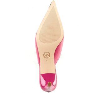 These Michael Kors women’s mules feature a bold pink leather design with a sleek pointed toe and metallic cap detail for a modern, stylish touch. The slip-on style and mid-heel provide both elegance and comfort, making them perfect for day-to-night wear. Finished with the signature MK logo on the sole, these chic heels add a pop of color and sophistication to any outfit.