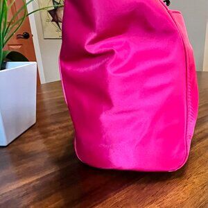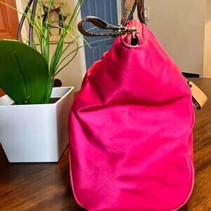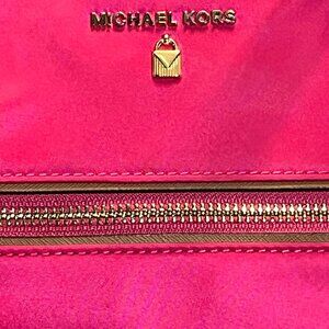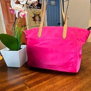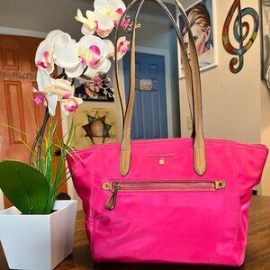 Michael Kors Kelsey Large Pink Nylon Saffiano Tote Travel Bag Tan Straps