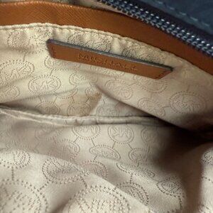 Michael Kors Kempton Handbag Zip Front Crossbody Bag Navy Blue Brown