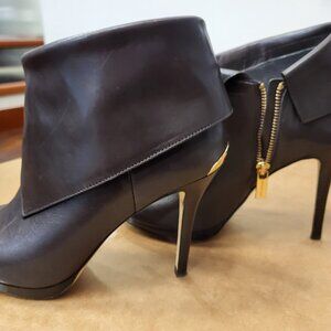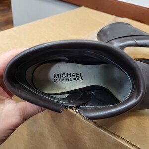 Beautiful Michael Kors brown leather bootie. Gold zipper and trim. Worn twice, no flaws except for normal wear on bottom of soles.