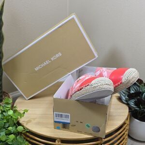 Step out in style with these Michael Kors Kendrick flats in Spiced Coral. Crafted in premium leather with a classic capped toe, these designer flats are versatile, chic, and perfect for any occasion. Brand-new and never worn, they come complete with the original box.