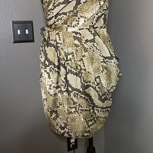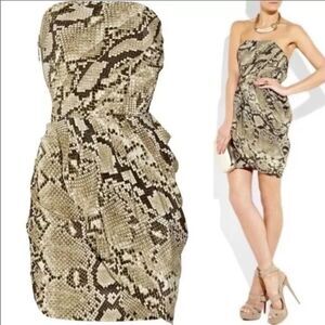 Michael Kors Khaki Cream Strapless Dress Snake print Chiffon Drape