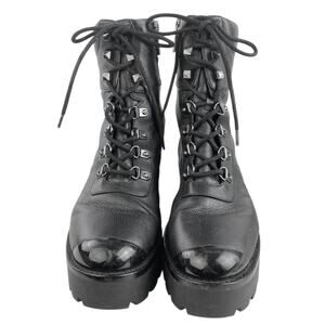 Michael Kors Khloe Women's Black Leather Lace Up Platform Combat Boots Size 6.5M