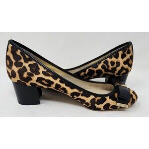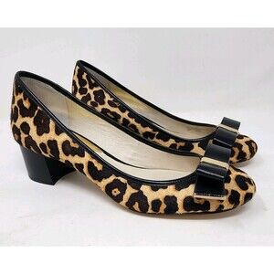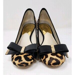 Michael Kors Kiera Leopard Calf Hair Leather Womens Size 10D Chunky Heel Bow