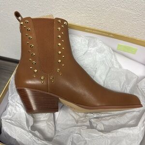 A western-inspired boot with downtown edge, the coveted Kinlee boot will instantly amp up any look. Crafted from supple leather accented with polished Astor studs, this effortlessly cool pair is designed with a pointed toe and set on a stacked heel for a relaxed yet refined finish. Featuring stretch-knit side panels and a back pull tab for easy wear, they’re sure to be a day-to-night favorite for years to come.