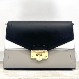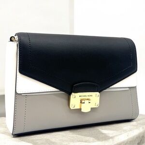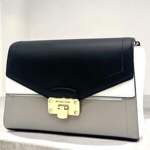 Michael Kors Kinsley Medium Shoulder Flap Crossbody Bag Optic White Multi