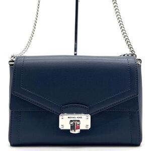 Michael Kors Kinsley leather Medium shoulder Flap Crossbody Bag Navy Blue