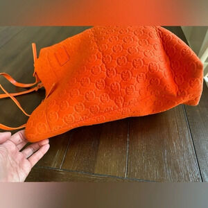 Minor wear/fraying to shoulder drop, minor wear to bottom and sides of the bag, ink mark inside (pic)