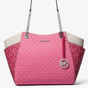 Michael Kors LG Jet Set Color-Block Signature Logo Shoulder Bag Dark Raspberry