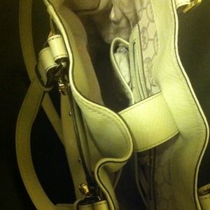 Like new condition (used for a few hours once) matte white python shoulder bag with a long strap. No low ball offers--in no hurry to sell this.