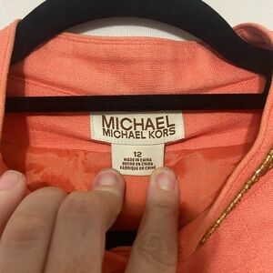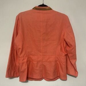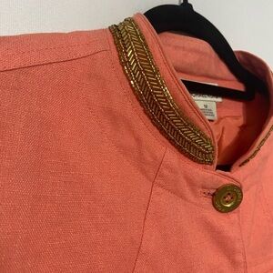 Michael Kors LIKE NEW coral linen blend military style jacket w/ beading size 12