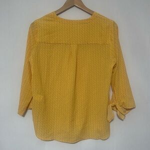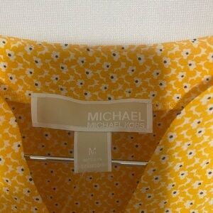 Michael Kors LIKE NEW micro floral split neck tie sleeve yellow blouse size M