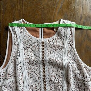 NWOT! No damage or signs of wear. Fully lined, hidden side zip, white embroidered lace with metallic details to give it a fun and unique flair. The perfect spring to summer dress!