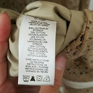 MK tan lace with white piping sleeveless dress. Cotton & nylon. 38" long, 17" w, back zip