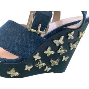 Michael Kors Lacey Navy Denim Butterfly Wedge Platform Sandals Size 9