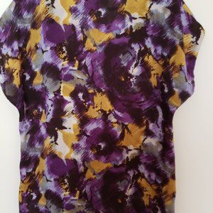 Michael Kors size large very pretty bright-colored blouse. It has a side pleat on the right . The purple stands out the most of all the colors. The material is polyester and machine washable. The blouse is in excellent condition.