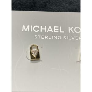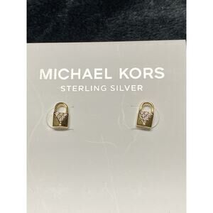 Michael Kors Ladies' Stud Earrings Mercer Link MKC1010AN710 are gold stud earrings with a snap closure. The earrings feature cubic zirconia stones in white/colorless, designed in a love-themed style.