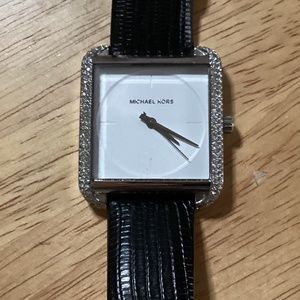 Michael Kors Lake Pave Silver-tone With Embossed Black Leather Band Women’s Watch for sale