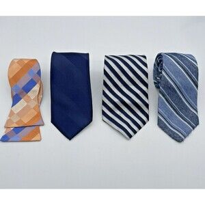 Michael Kors Lands End Silk Neckties Lot of 3 / 1 Bow Tie Striped Blue Orange