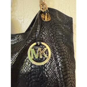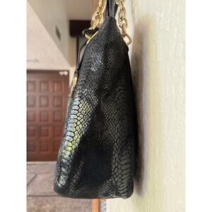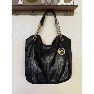 Michael Kors Large Black Snake Print Shoulder Tote Bag Gold Chain Straps