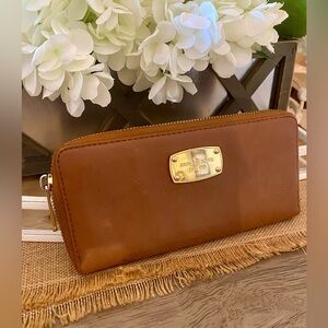 Michael Kors Large Brown Pebbled Leather Zip Around Continental Wallet | EUC